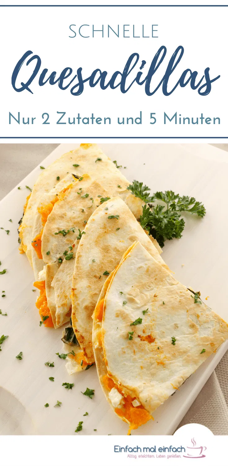 Besorge Dir also beim nächsten Einkauf gleich noch eine Packung Tortillas und schon bist Du für alle Fälle gerüstet für schnelle Quesadillas!