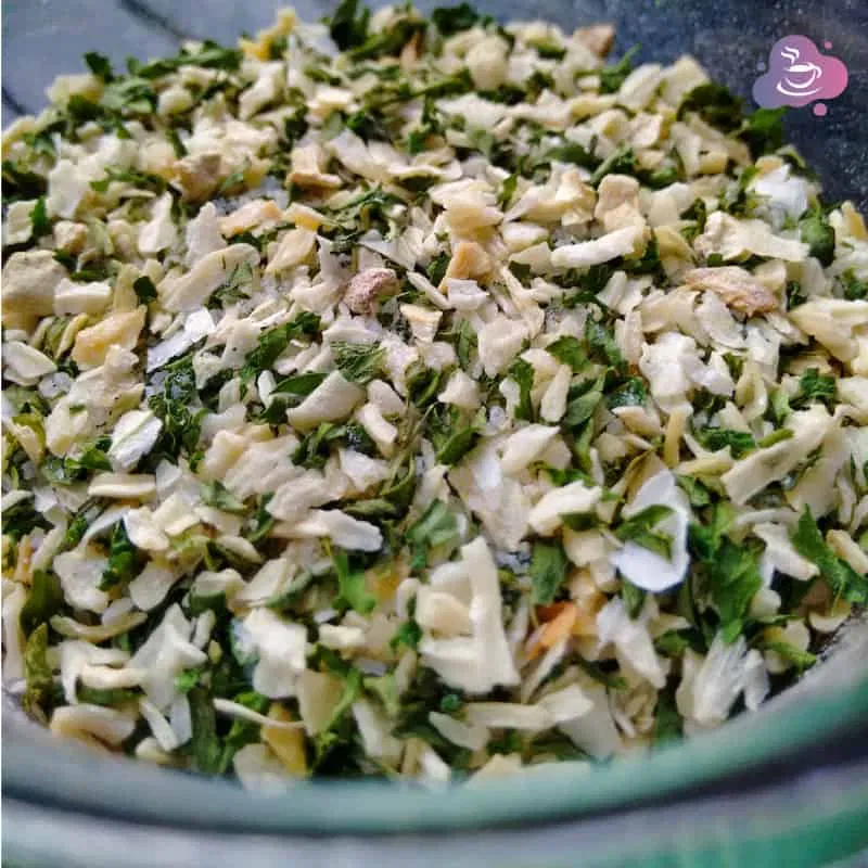- 12 g (1/2 cup) Petersilie getrocknet