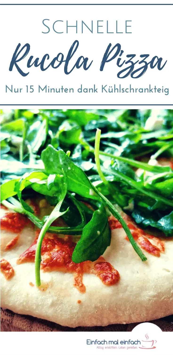 Dank des Kühlschrankteiges ist das Abendessen damit innerhalb von 15 Minuten erledigt. Den Pizzaboden kann man vorbereiten während der Ofen vorheizt. Sobald die Pizza gebacken wird, hat man noch knapp zehn Minuten Zeit, um den Rucola-Belag anzurichten. Und das geht so schnell, dass noch ein paar Minuten Zeit für Pinterest bleiben…