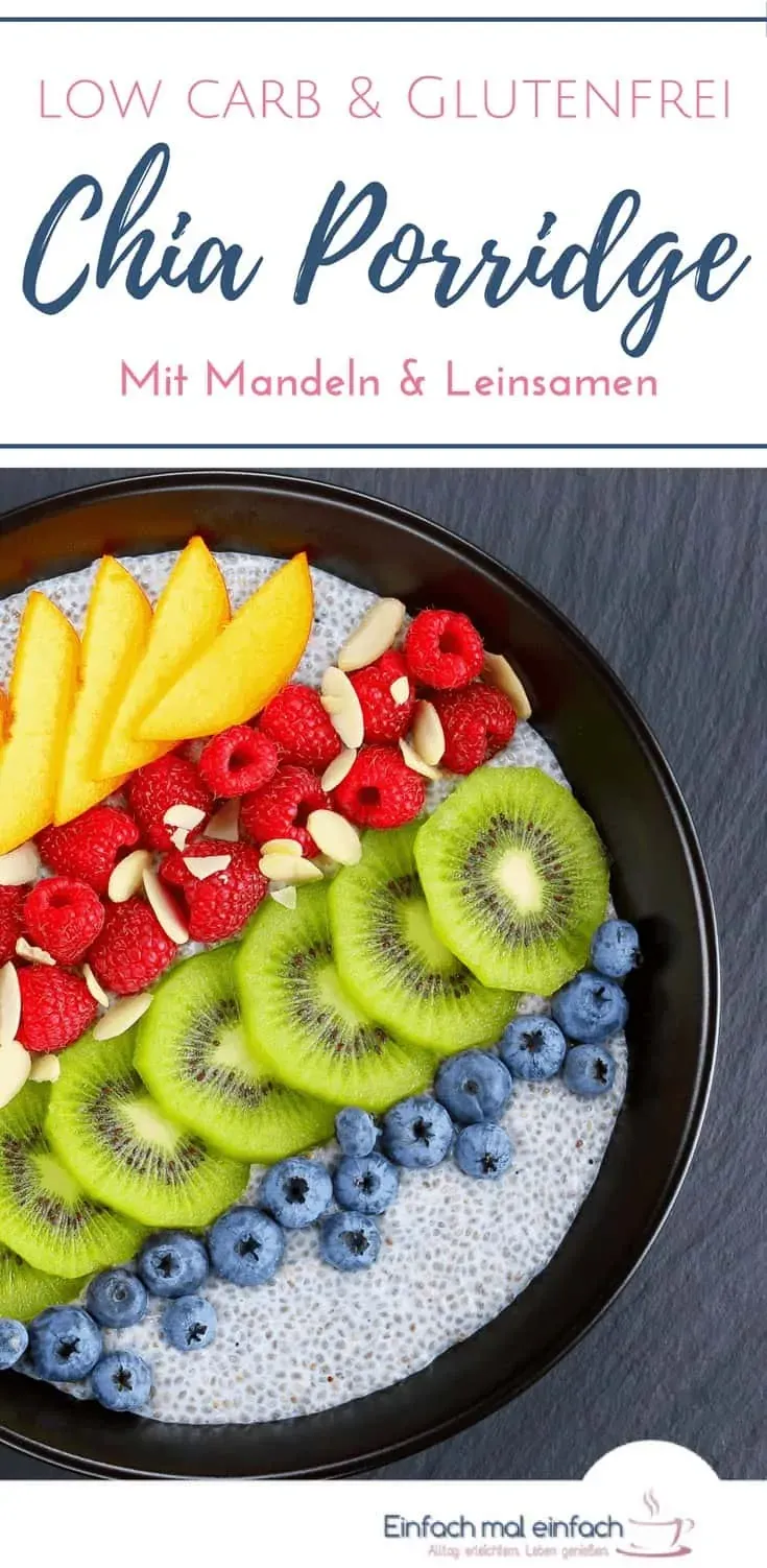 Er ist sehr sättigend, ausgesprochen nährstoffreich und vielseitig abwandelbar. Durch das Fehlen von glutenhaltigen Getreiden können auch Porridgefans mit Glutenunverträglichkeit dem Morgen freudig entgegen sehen. Und wer in irgendeiner Weise die Kohlenhydratzufuhr begrenzen muss oder möchte, kann mit diesem Chia Porridge etwas Vielfalt ins Frühstücksleben bringen.