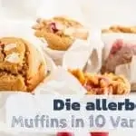 Die Menge lässt sich super verdoppeln oder auch halbieren. Wer eine bunte Mischung aus mehreren Varianten vorbereiten möchte, der kann je 350 g Grundteig mit der halben Menge der Extra-Zutaten vermischen. Das funktioniert auch super mit der doppelten Menge des Grundteigs, was dann zu vier verschiedenen Muffinvarianten führt. Dann ist der Aufwand natürlich ein bisschen größer.