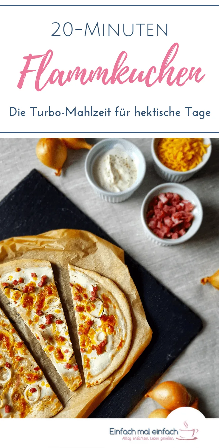 Mit diesem wundervoll duftendem und schnell zubereitetem Flammkuchen hast Du in 15 Minuten das Essen auf dem Tisch.