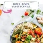 Auch hier ist mein Zeitspartipp für wuselige Tage: Nutze eine TK-Gemüsemischung für asiatische Gerichte, wenn keine Zeit zum Schnibbeln ist. Oder wenn Du gerade kein frisches Gemüse im Haus hast.