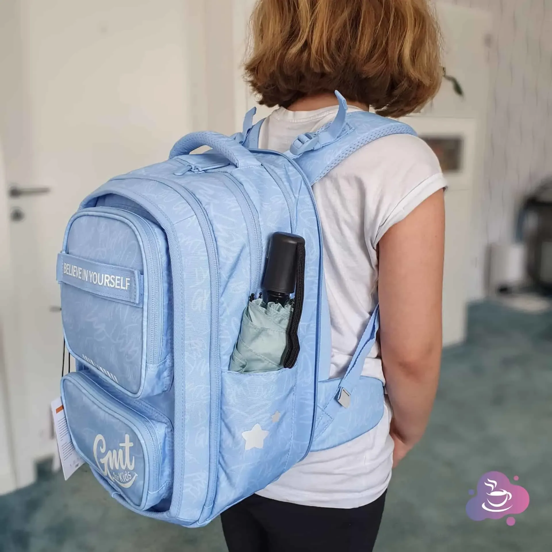 Die Schulrucksäcke von GMT for Kids sind aber nicht nur bequem, sondern auch äußerst praktisch organisiert, um das Gewicht gleichmäßig zu verteilen und den Inhalt leicht zugänglich zu machen. Besonders toll finden wir die elastische seitliche Flaschentasche, die außen angebracht ist. So kann die Flasche nicht aus Versehen im Inneren auslaufen und für nasse Schulsachen sorgen. Gleichzeitig wird sie durch den elastischen Bund an Ort und Stelle gehalten.