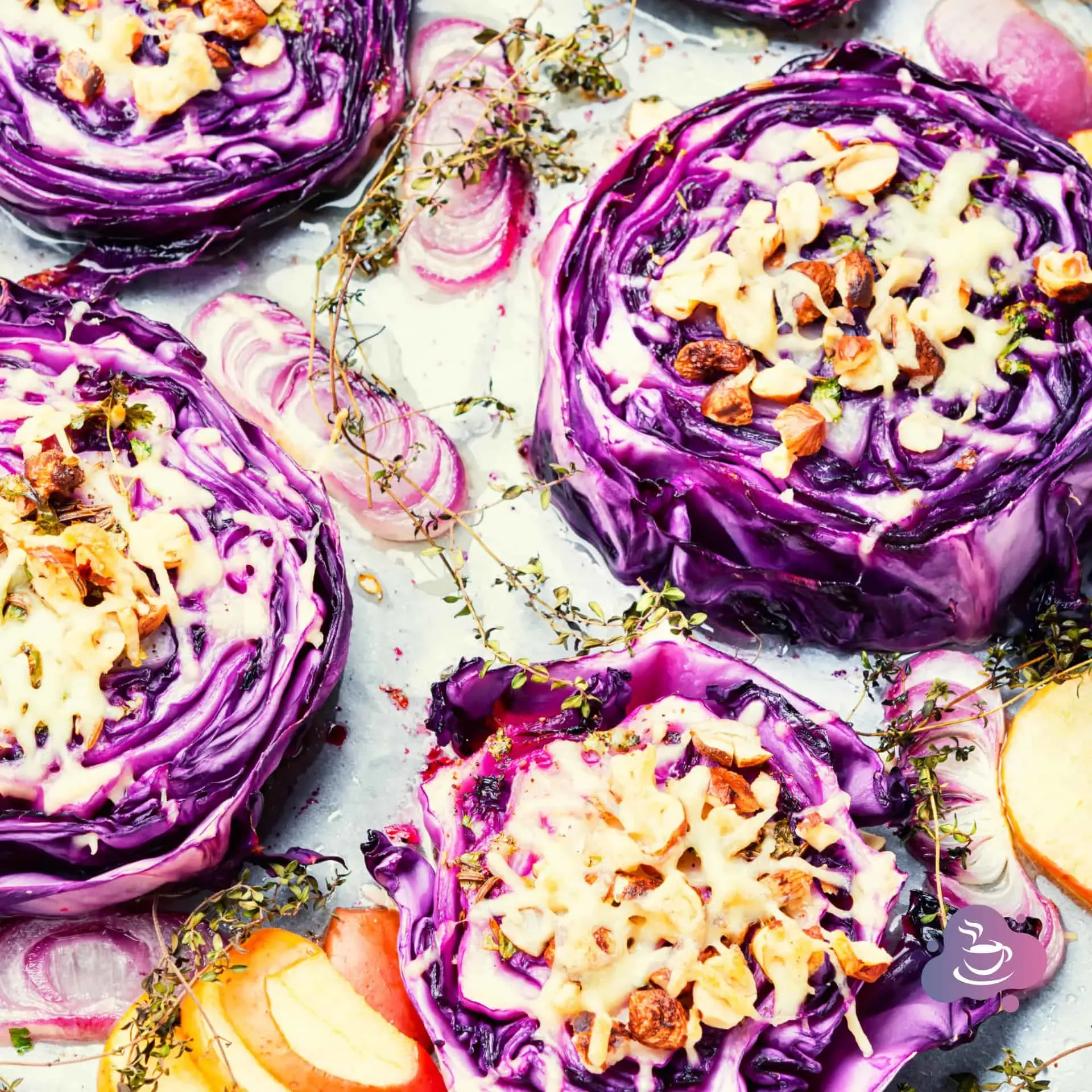 #12 Oder wie wäre es mit Rotkohlsteaks? Die sind der absolute Renner: Reichhaltig, farbenfroh und ein echter Gaumenschmaus zum Weihnachtsessen. Wer es vegetarisch will, der ersetzt den Speck einfach mit gerösteten Walnüssen. Hier findest du die Video-Anleitung.